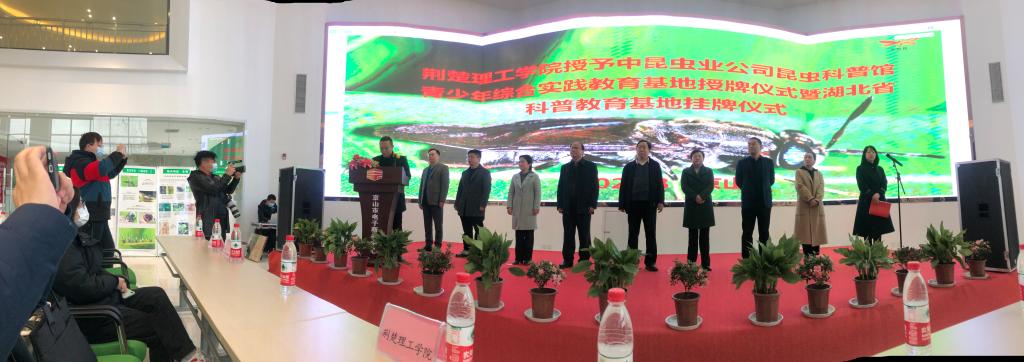 3月22日,QY千亿球友会授予中昆虫业湖北生物科技公司昆虫科普馆“青少年综合实践教育基地”授牌仪式暨“湖北省科普教育基地”挂牌仪式在京山金瑞物流产业园信息大楼举行。QY千亿球友会党委书记王学民出席并讲话,荆门市政协副主席李志珍宣布京山昆虫科普馆开馆,荆门市科协主席朱才坤出席仪式,京山市委书记张勇致欢迎辞,QY千亿球友会副校长曹甜东为中昆虫业湖北生科技有限公司昆虫科普馆授牌。京山市副市长丁呈呈主持仪式。