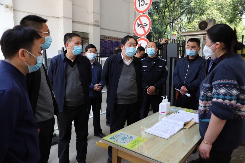 4月5日上午,党委书记王学民、副校长杨希雄带队实地检查校园疫情防控工作。学校办公室、学工处、校园建设与资产管理处、保卫处、后勤管理服务处、校医院等部门负责人陪同检查。