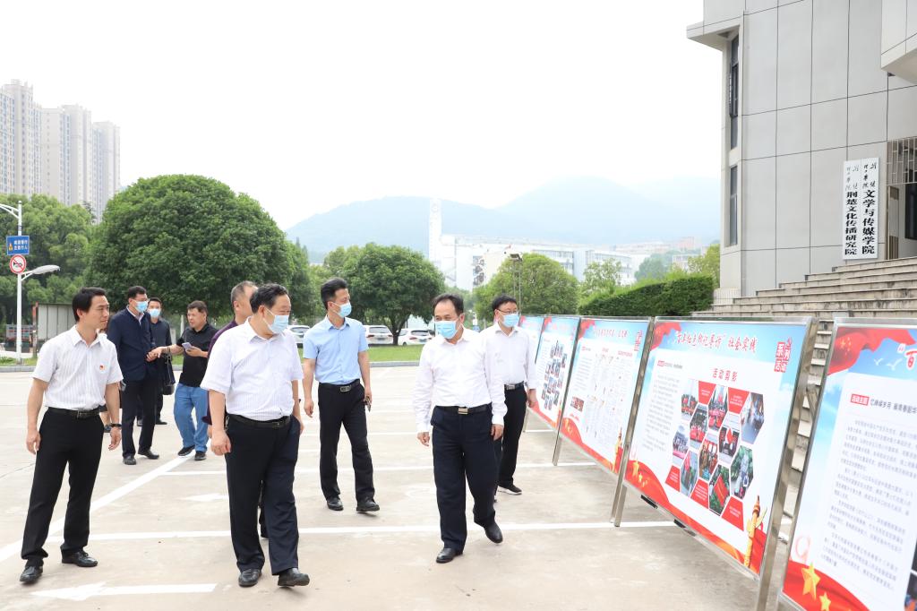 喻立平一行还听取了马克思主义学院建设情况汇报,参观了学校“七个一百”大学生党史学习教育成果展,艺术学院服务地方成果展。
