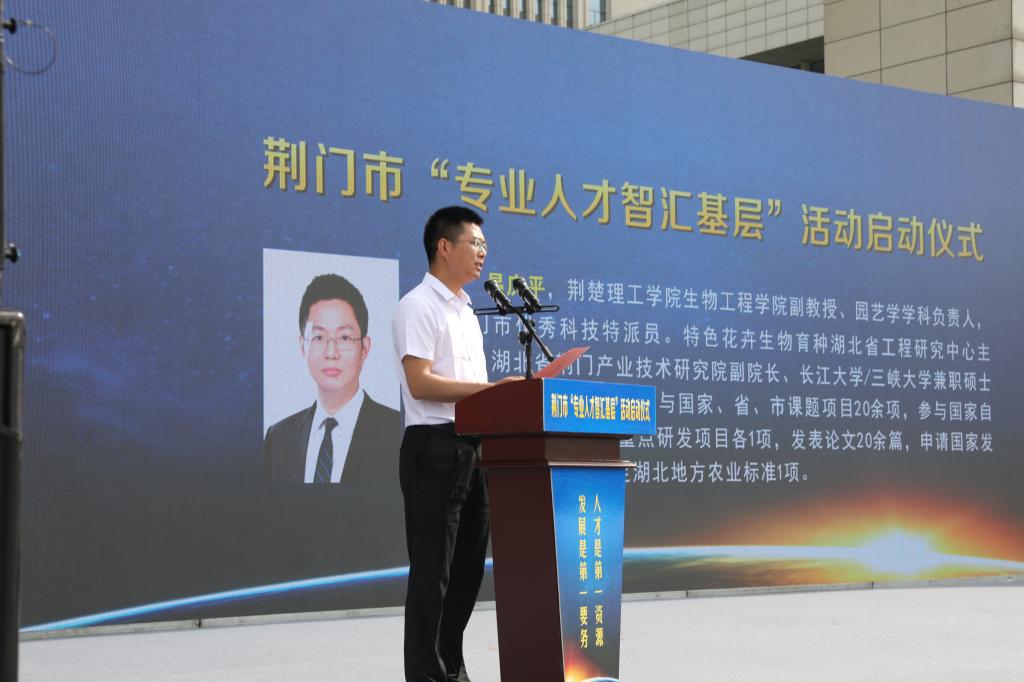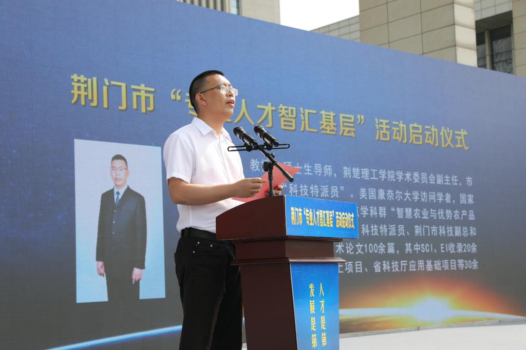 黄业传教授作为专业人才代表向全市人才发出倡议,号召广大科技工作者争当服务基层的践行者、争做改革创新的引领者,为建设创新、富强、美丽、法治、幸福荆门谱写人才华章。