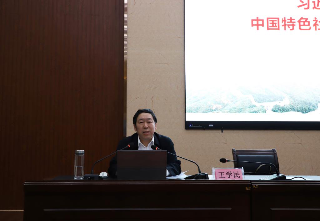 开班仪式后,王学民作开班第一讲。他从习近平新时代中国特色社会主义思想的创立、内容、地位以及如何学好习近平新时代中国特色社会主义思想等方面作了讲解。