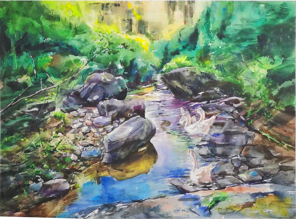 此次展览共展出113件绘画作品,涵盖中国画、油画、水彩画等多种艺术形式。为办好此次画展,艺术学院开展了以“助力乡村振兴 展示我市乡村建设成果”为主题的采风写生创作活动。工作室坚持每周组织一次采风、写生活动,并定期组织教师外出开展采风、参观交流等活动,不断拓宽眼界,积累创作素材,为时两年,12名教师共创作绘画作品240余件。