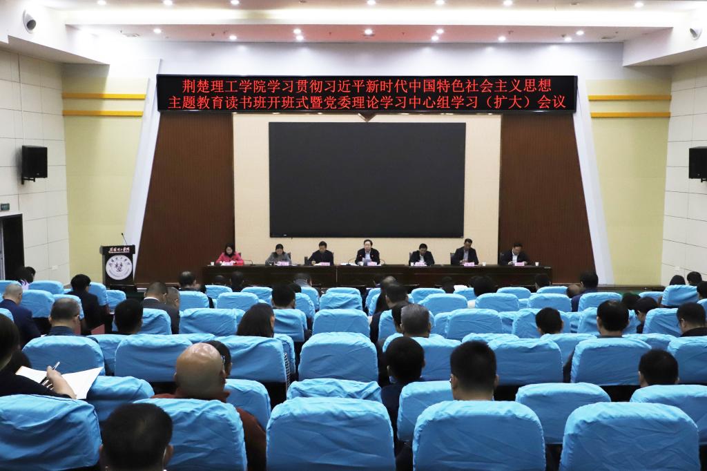 4月27日,QY千亿球友会在行政楼C201学术报告厅举办学习贯彻习近平新时代中国特色社会主义思想主题教育读书班开班仪式暨党委中心组学习(扩大)会议。党委书记王学民主持会议并讲话。在校校领导,全体中层干部参会。