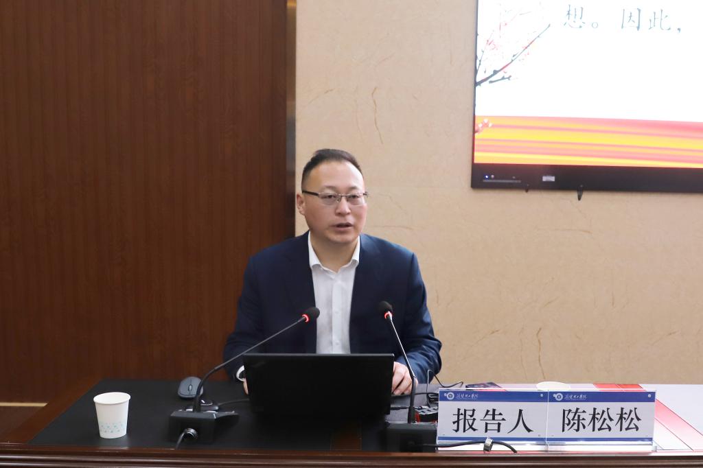 5月6日上午,学校在行政楼C201学术报告厅举行学习贯彻习近平新时代中国特色社会主义思想主题教育读书班专题辅导报告会。湖北省青年宣讲团成员、市委宣讲团成员、市委党校副教授陈松松应邀作宣讲报告。全体校领导出席,党委常委、宣传部部长郑艳主持报告会。