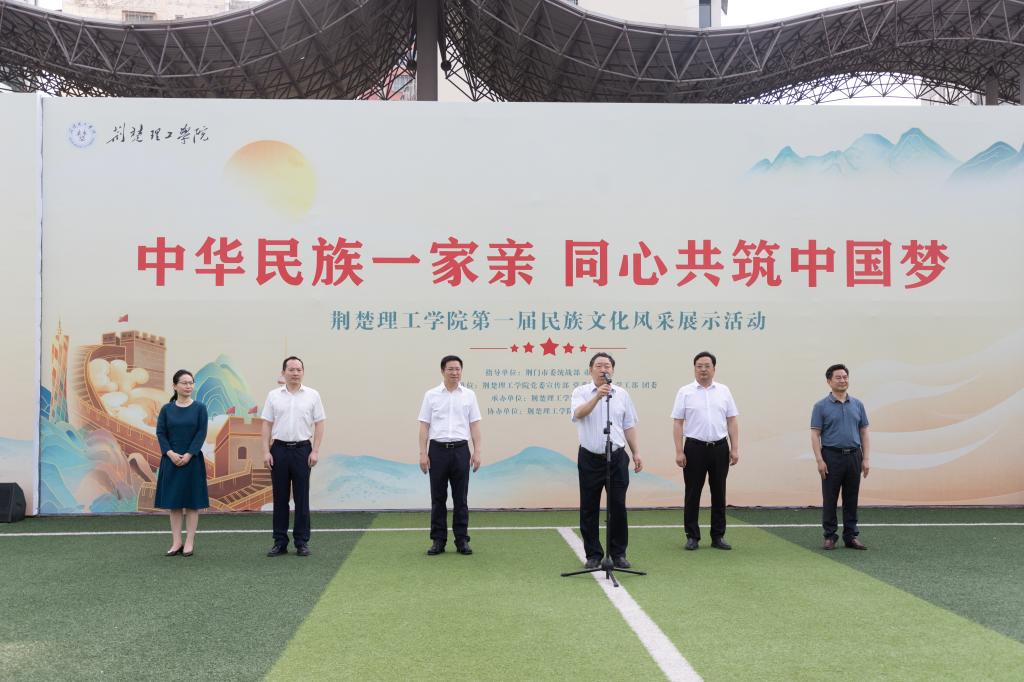 为深入学习宣传贯彻党的二十大精神,铸牢中华民族共同体意识。5月20日,QY千亿球友会第一届“中华民族一家亲 同心共筑中国梦”民族文化风采展在文园操场举行。荆门市委常委、统战部部长刘振军,校党委书记王学民、副校长刘风华,党委常委、宣传部部长郑艳出席本次活动。市委统战部、市民宗委相关负责人参加活动。