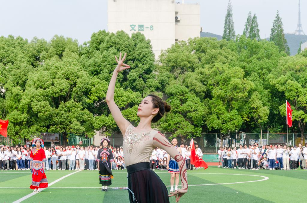 在民族特色展示中,同学们带来了热情奔放、独具风情的民族舞蹈。一支欢快喜庆的藏族《锅庄舞》将现场气氛推上高潮,舞姿顺达自然,优美飘逸,撒开双臂侧身拧腰大搓步跳起,挥舞双袖载歌载舞,体现了藏族人民纯朴善良、勤劳勇敢、热情奔放的民族性格......各民族特色文艺表演吸睛夺目,为师生带来浓厚的民族风情和中华民族丰富多样的传统文化视觉感受。