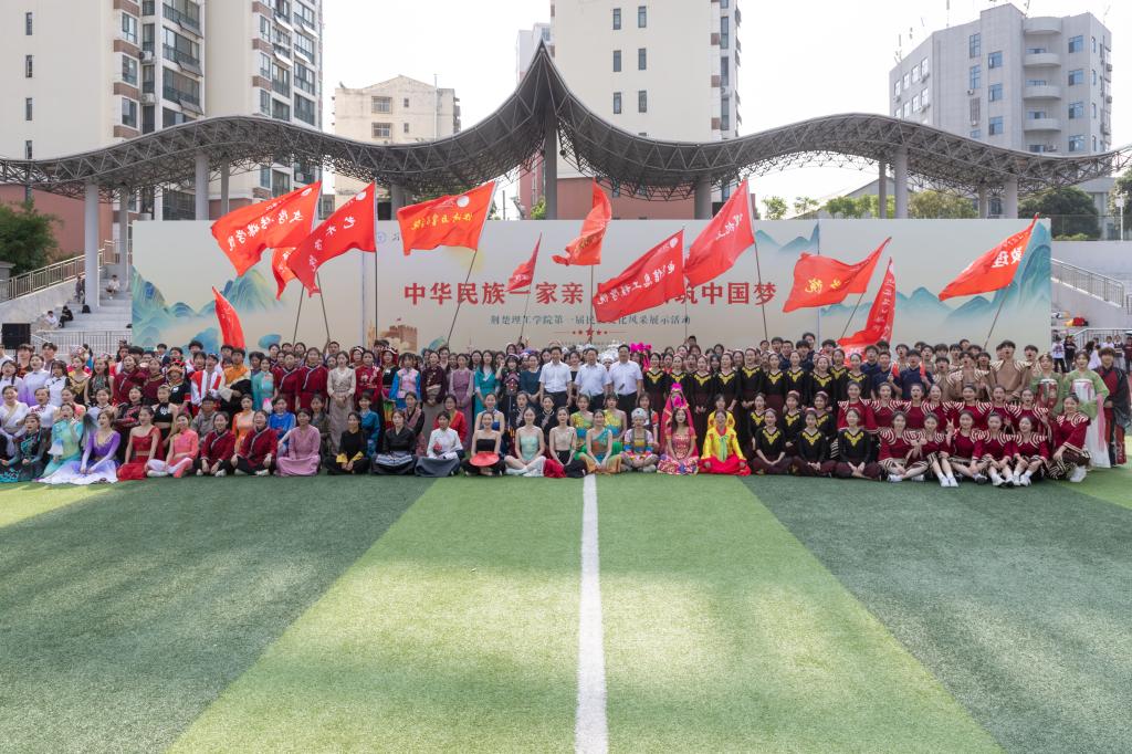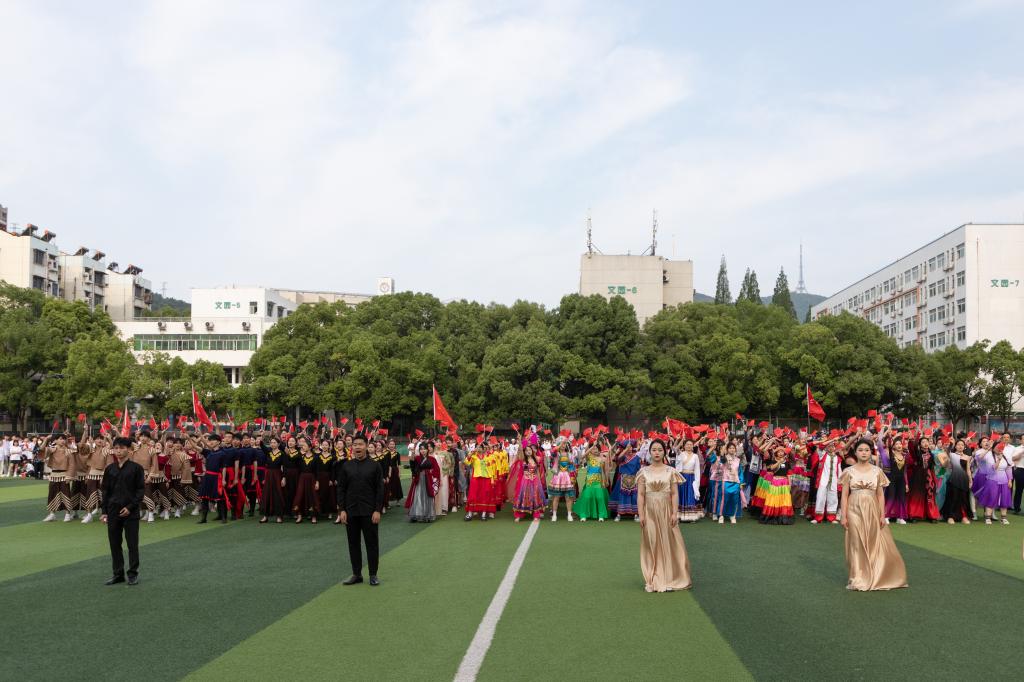 在一曲欢快的摆手歌中,各民族师生跳起了民族团结的舞蹈,现场的同学们也都纷纷加入,呈现了一部各民族交融汇聚成多元一体的史诗,增强了各民族师生对中华文化的认同感和自豪感。