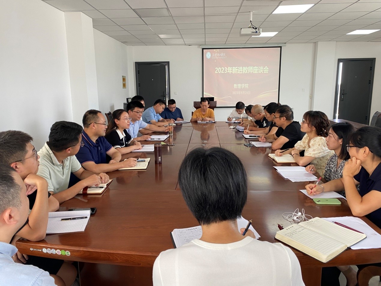 为进一步加强教师队伍建设,增进凝聚力,数理学院于8月24日下午在教学楼C2-601会议室召开了2023年新进教师座谈会。学院班子成员、各办公室负责人、教研室主任和2023年新入职教师参加座谈。