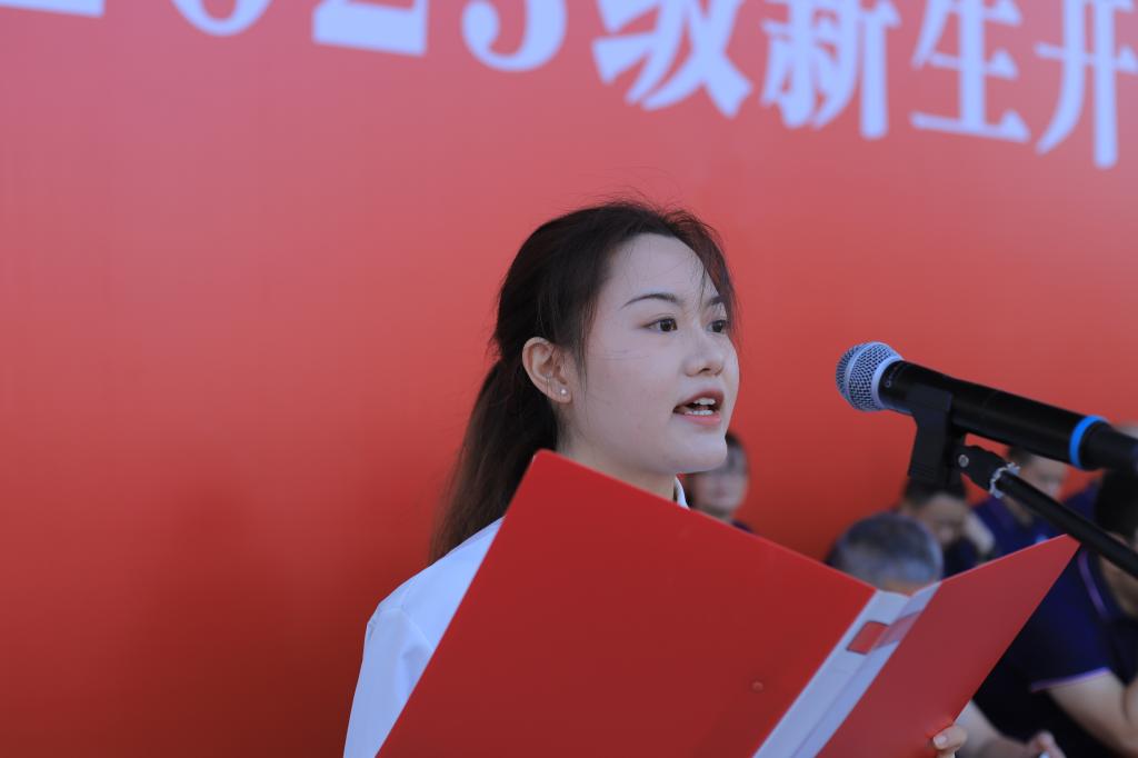 老生代表洪艺汇分享了自己对校训“崇学尚德,求实创新”和荆楚理工人使命担当的理解。她希望新同学们勇于尝试,逐梦前行;勤读善思,全面发展;励行塑品,用脚踏实地的行动去铸就QY千亿球友会的辉煌!