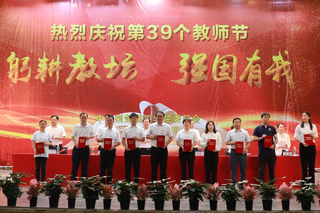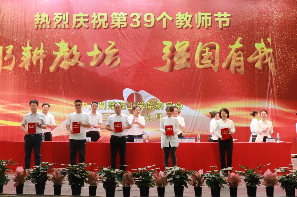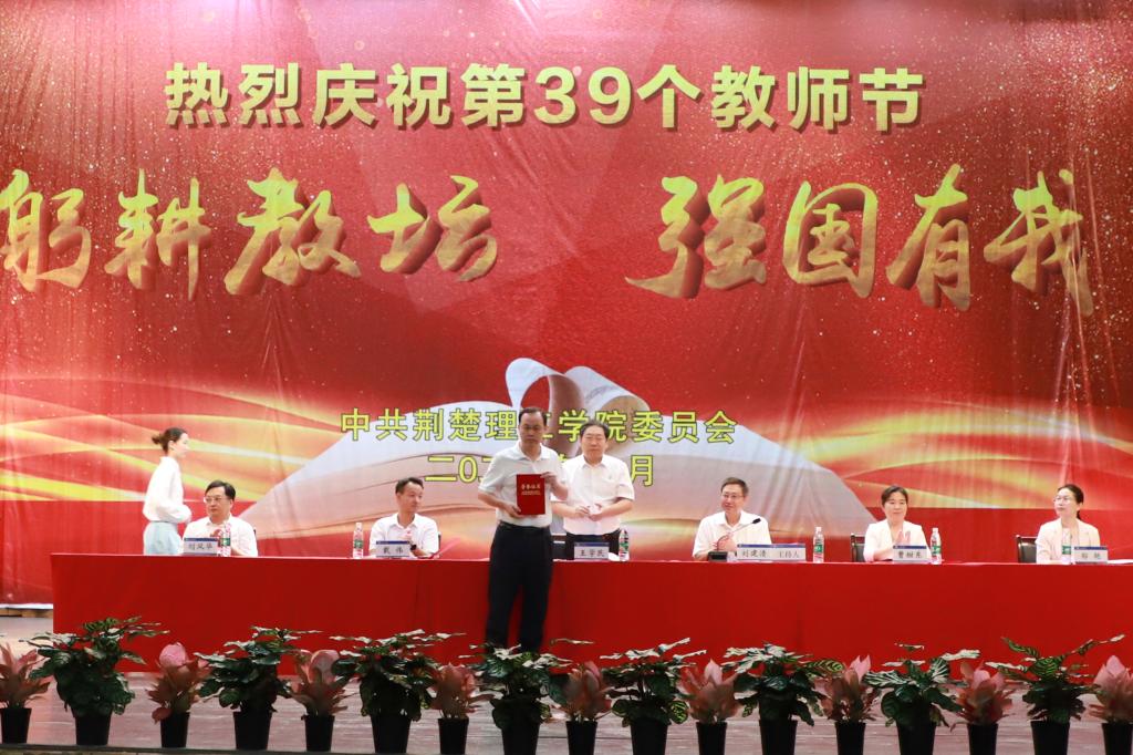 校党委书记王学民向辛勤耕耘、默默奉献在教育教学一线的全校教职员工致以节日的问候和崇高的敬意,向受到表彰的优秀教师表示热烈祝贺,向离退休老教师表示衷心感谢,向加入荆楚理工大家庭的新教师表示诚挚欢迎。