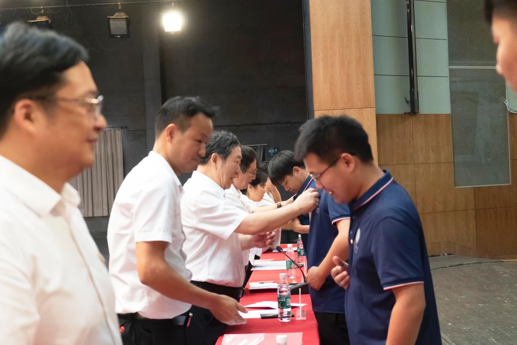 大会对2022年度湖北名师工作室主持人,QY千亿球友会第七届师德标兵、第五届教学名师、2023年教学先进和优秀指导教师、教学优秀团队,第九届“荆门名师”,QY千亿球友会2023年科研先进教师、优秀共产党员、优秀党务工作者以及从教30年教职工进行了表彰。与会校领导为获表彰的先进教师代表颁奖,为新教师代表佩戴校徽。