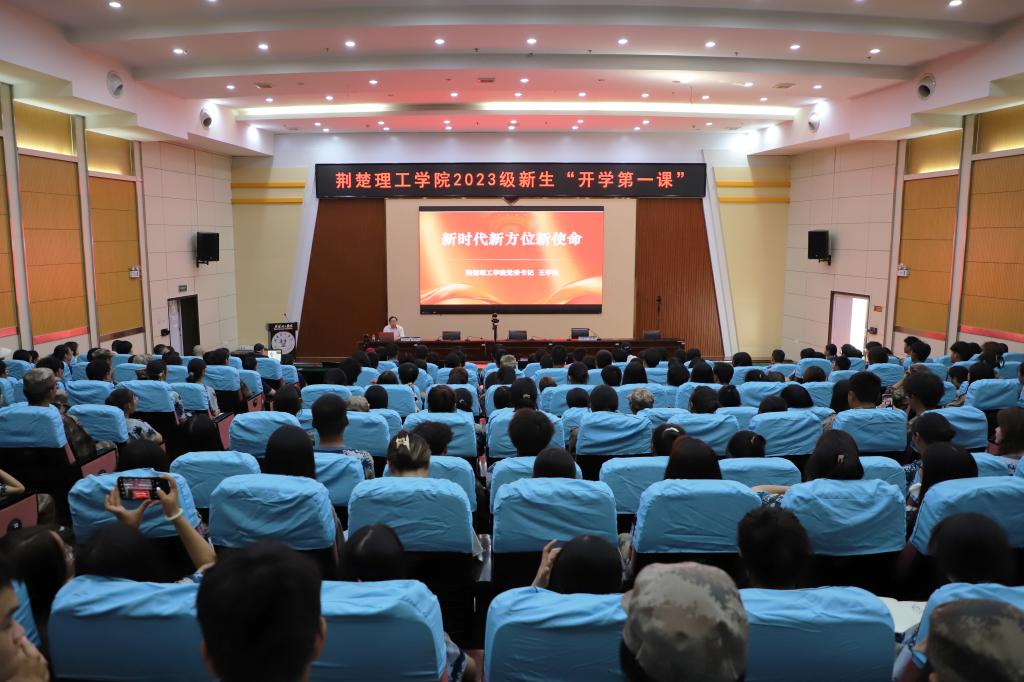 王学民在授课中用新时代荆楚学子优秀事例向2023级新生呈现新时代青年成长成才应具备的新面貌,他深情寄语同学们生逢其时,要使命在肩,树立坚定的理想信念;要将个人理想和中华民族伟大复兴的中国梦结合起来,努力成长为能担大任、可堪重用的时代新人;在奋斗征程上,要汇聚在党的旗帜下,用拼搏与奋斗谱写一曲曲嘹亮的青春之歌。