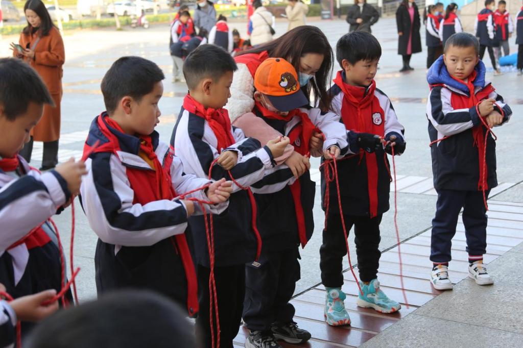 开展活动前,益动社工社会工作者们对每个游戏项目进行讲解,志愿者们协助教授自救方法。“姐姐,你看我系得对吗?”“老师,他抬的太高啦!””老师,我来我来!”。孩子们跃跃欲试,纷纷争相体验。