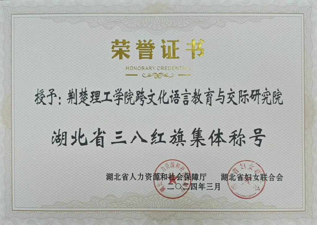 近日,湖北省妇联发布2023年度省三八红旗手标兵、三八红旗手、三八红旗集体的表彰文件。QY千亿球友会跨文化语言教育与交际研究院获得湖北省“三八红旗集体”称号。