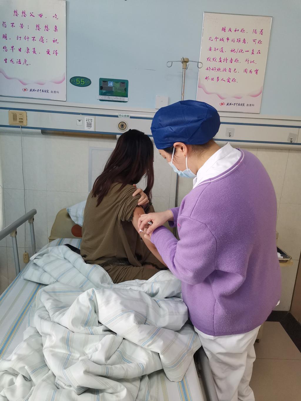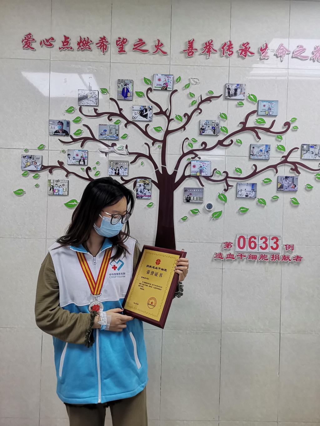为了顺利捐献造血干细胞,花千亿同学开始努力改善作息时间,在医院连续几天注射造血干细胞动员剂,加快干细胞的生长速度。这让她出现了头晕,腰酸等症状,但她还是坚持了下来,成功完成了干细胞的数量要求。“捐献前医生和我说过注射完动员剂后会有些不舒服,这是正常反应,所以我心里已经有所准备,经过简单活动就得到了缓解。”