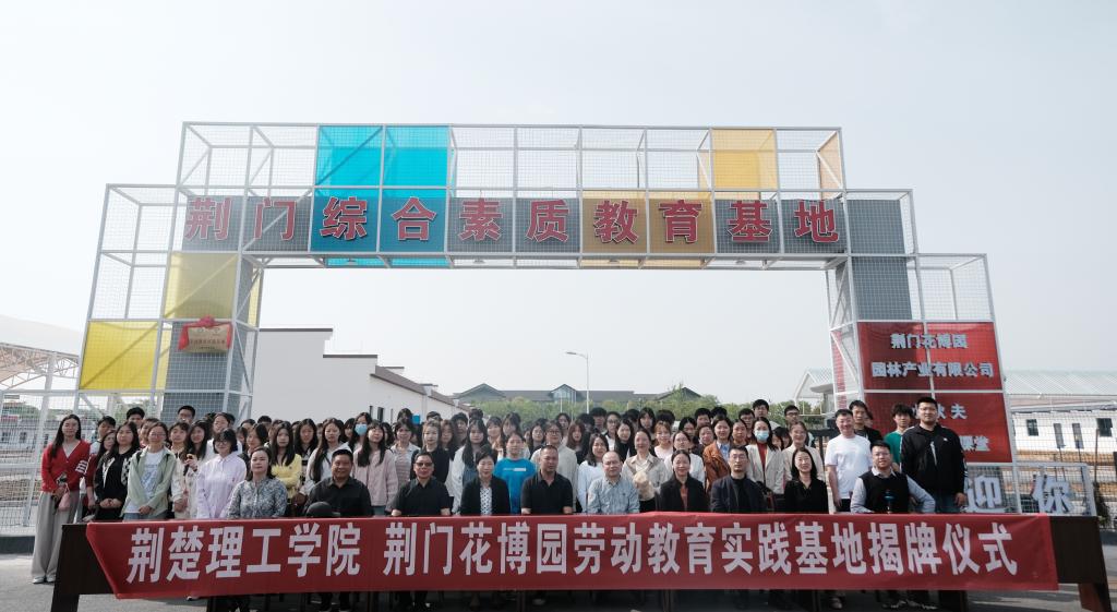 仪式上,学校与荆门花博园园林产业有限公司签订校企合作框架协议,双方代表为劳动教育基地揭牌。