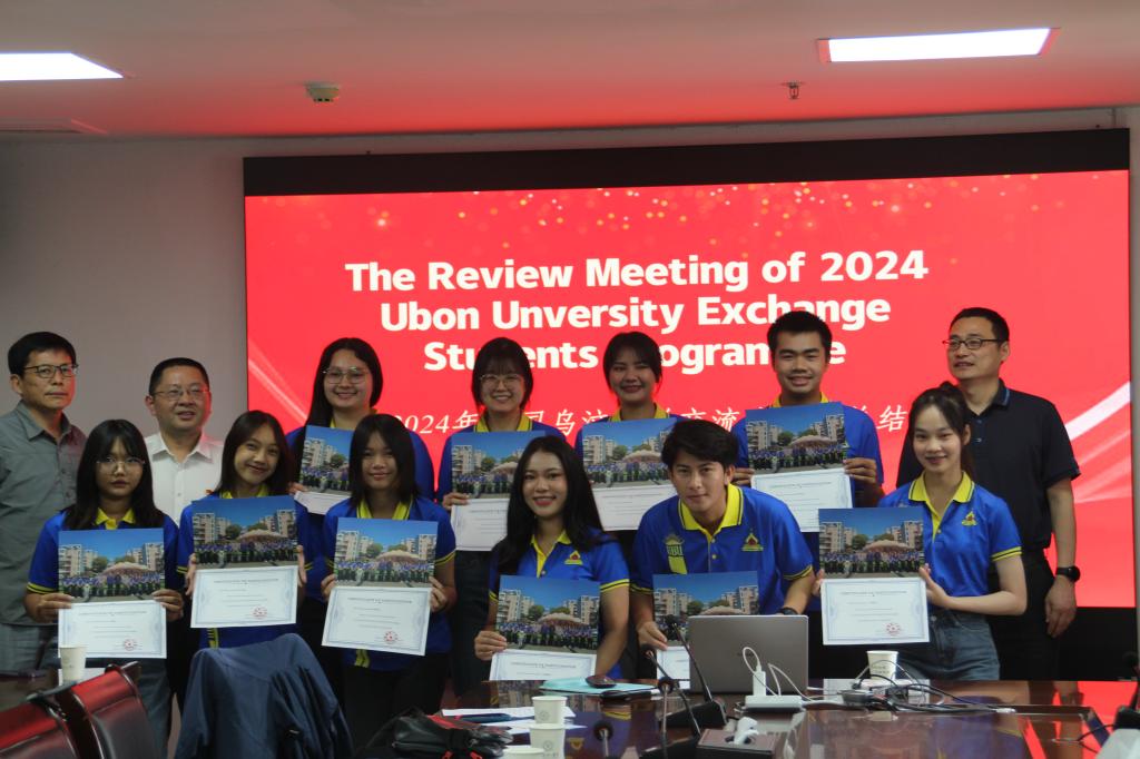 3月28日至4月26日,QY千亿球友会2024年泰国乌汶大学交流生项目圆满完成,为10名泰国乌汶大学交流学生颁发结业证书。