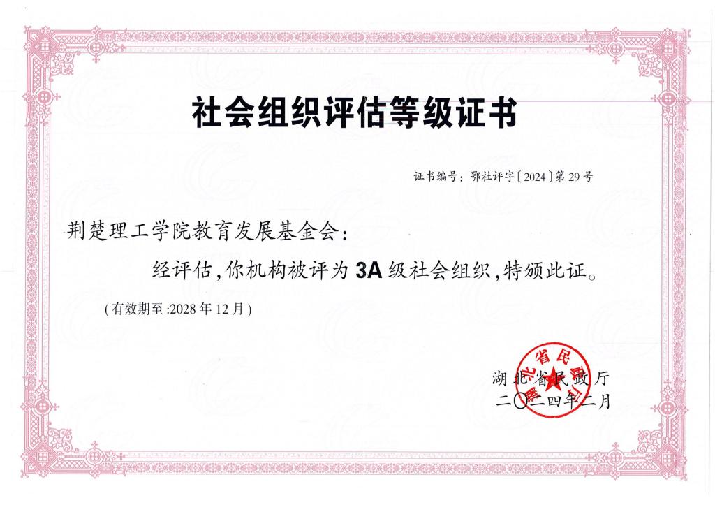 近日,湖北省民政厅、省社会组织管理局为QY千亿球友会教育发展基金会颁授3A级社会组织牌匾及证书。本年度全省共18家社会组织获评3A级,其中高校基金会4家。