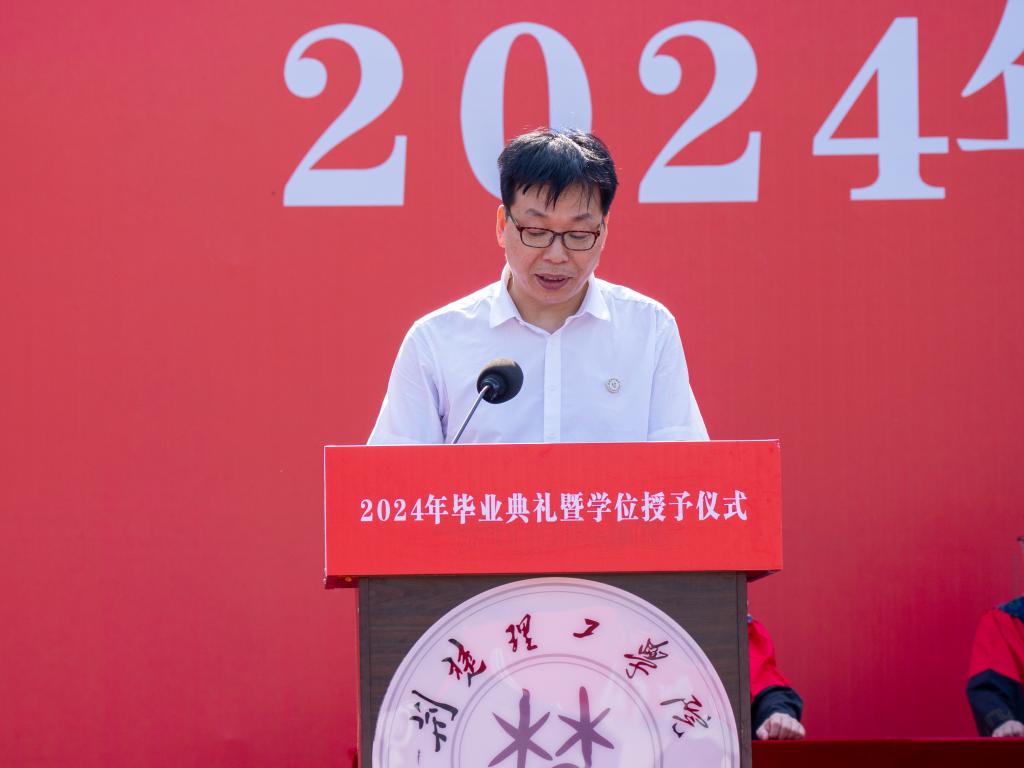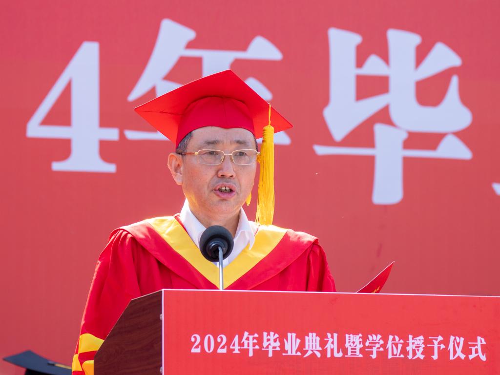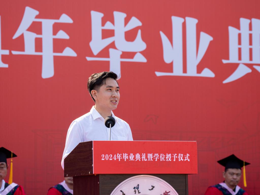 教师代表、经济与管理学院彭勤涛寄语毕业生不忘初心,追求卓越,怀揣梦想与勇气,乘风破浪,创造属于自己的辉煌人生!
