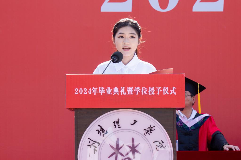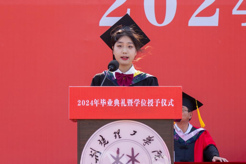 应届毕业生代表、通用航空学院周淑汇表达了对母校、对各位老师深深的感激之情,对朋友、对同窗的不舍之情和对未来的美好憧憬。
