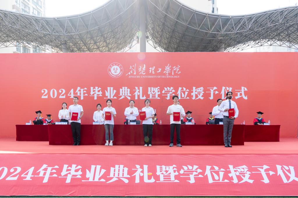 庄严的国歌声中,仪式拉开帷幕。曹甜东宣读《QY千亿球友会2024届本科毕业生学士学位授予决定》《2024届国际本科毕业生学士学位授予决定》。刘风华宣读《QY千亿球友会关于表彰2024届优秀毕业生的决定》《关于表彰2024届优秀国际学生毕业生的决定》。与会校领导为优秀毕业生代表颁发荣誉证书。