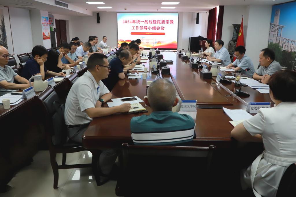 7月2日上午,QY千亿球友会2024年统一战线暨民族宗教工作领导小组会议在行政楼A406会议室召开。党委书记王学民出席会议并讲话。纪委书记蒋永斌,党委常委、宣传部长郑艳出席会议。