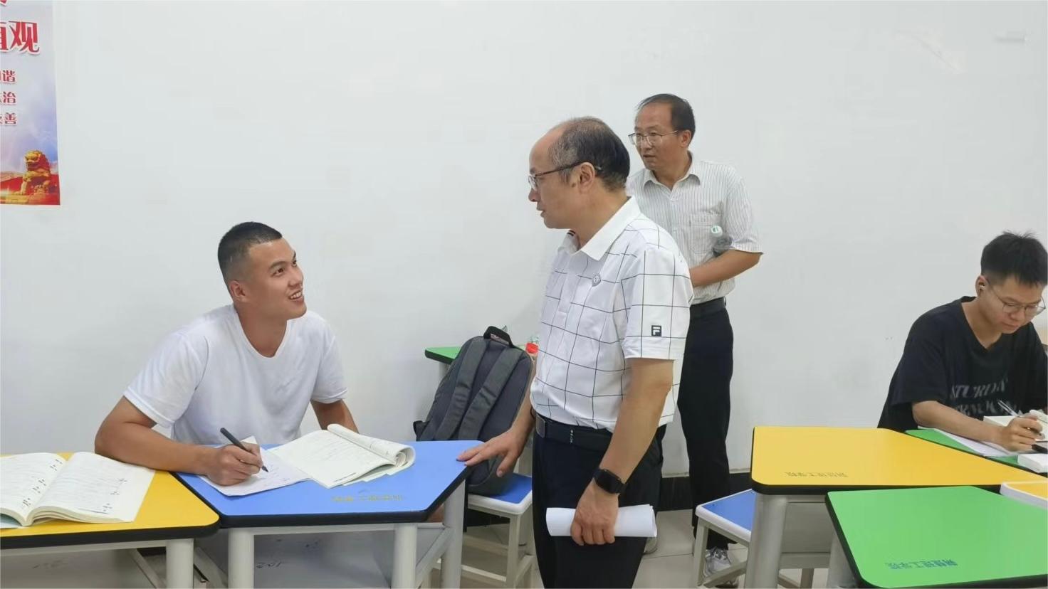 7月16日上午,校长张友兵、副校长曹甜东一行来到四合院考研自习室,看望暑期留校考研复习学生,鼓励学子们在考研冲刺阶段坚定信念、保持学习热情。
