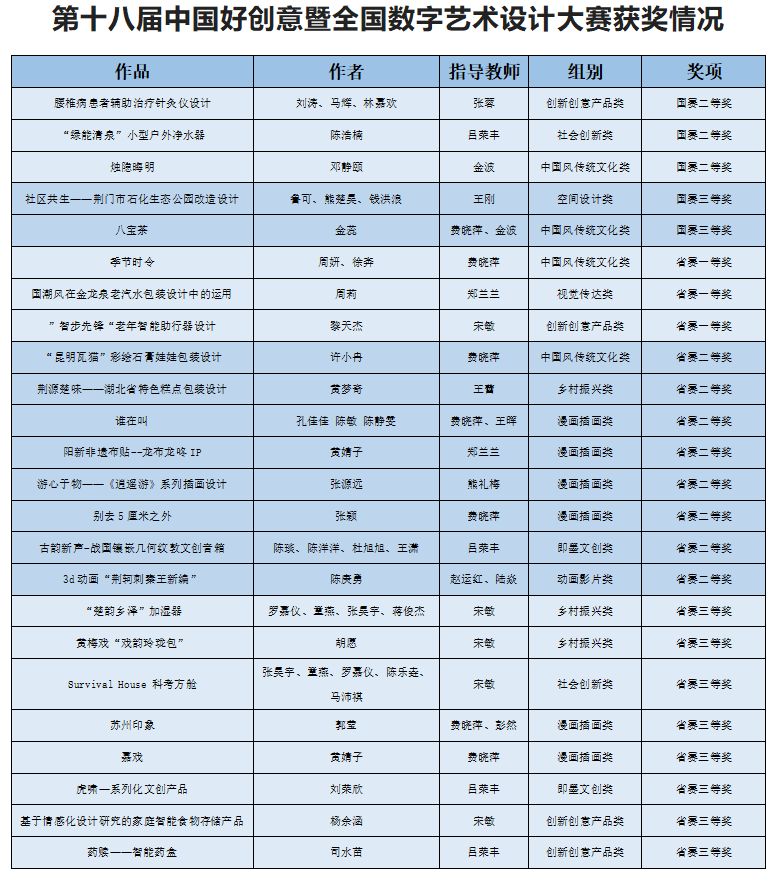 近日,第十八届中国好创意暨全国数字艺术设计大赛落下帷幕。QY千亿球友会师生共24项作品获奖,荣获国家级二等奖3项、三等奖2项,省级一等奖3项、二等奖8项、三等奖8项,获奖数量创历史新高!