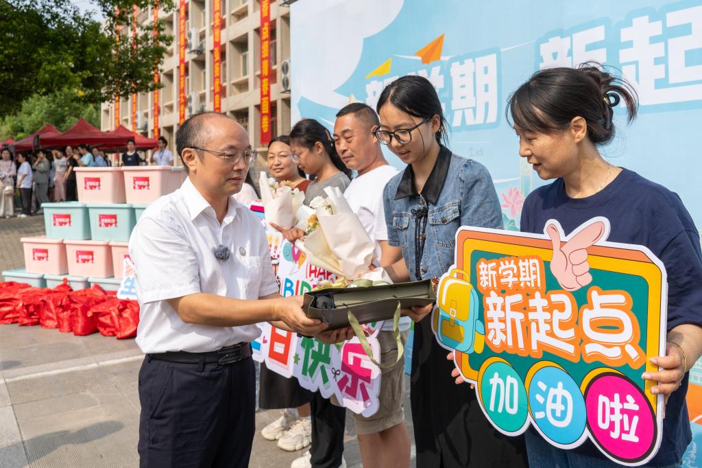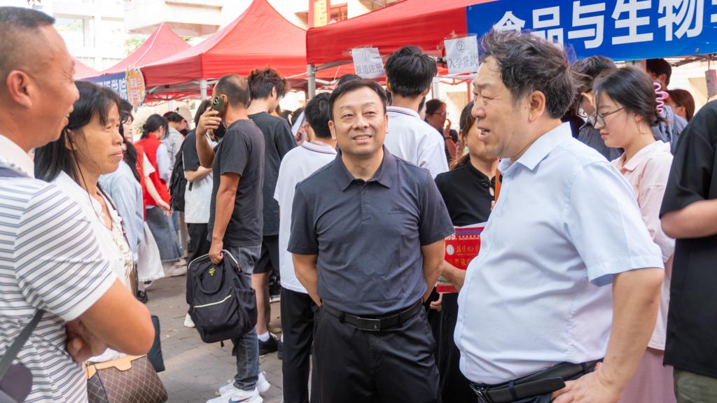在迎新现场,党委书记王学民、校长张友兵等一行与2024级新生和家长们亲切交谈,来到各报到点详细了解新生报到、入学安排、学生入住等工作情况,慰问现场忙碌的师生和志愿者们,并为2024级新生们发放生日礼包和爱心礼包,勉励新生们要尽快适应大学生活,积极面对挑战,在大学的舞台上尽情展示自己的才华,勇于攀登知识的高峰,实现自己的梦想。