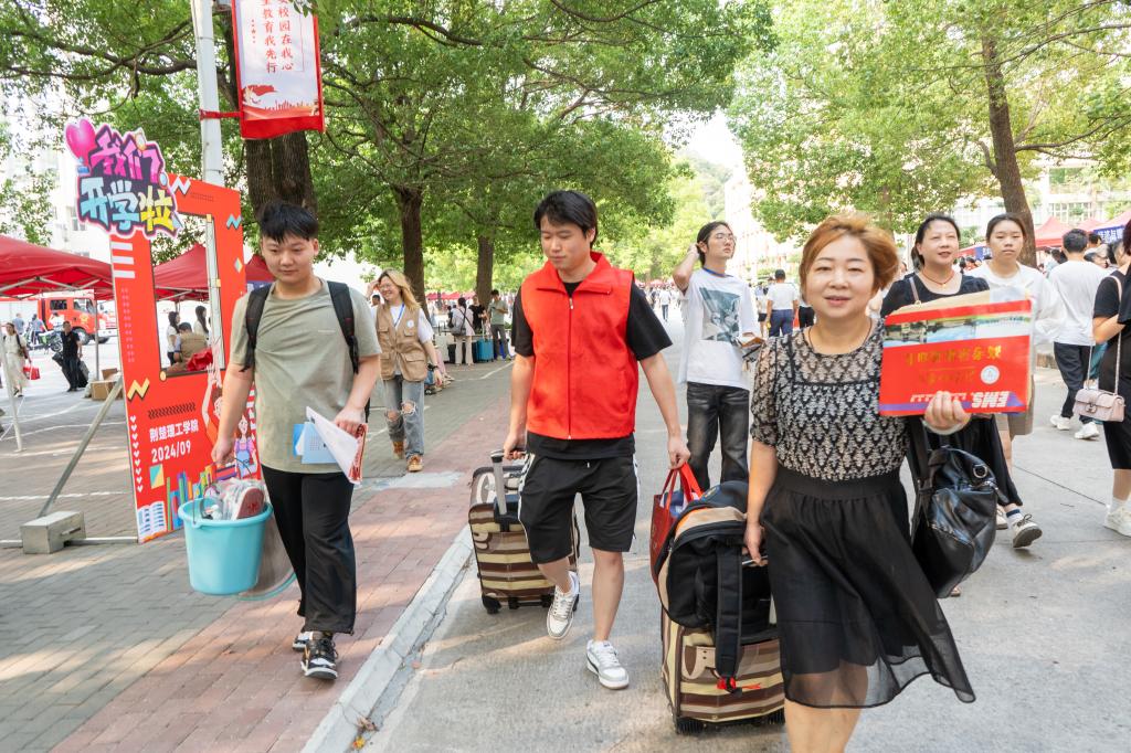 “同学,你好!请问有什么需要帮忙的吗?”“我来帮您拿行李”。志愿者们在迎新现场穿梭,以炽热之心温暖每一位新生学子。一路上,他们热情地向新生们介绍校园环境和设施,协助搬运行李,引导他们在各迎新点依次完成缴费、办理入住、一卡通办理等流程。