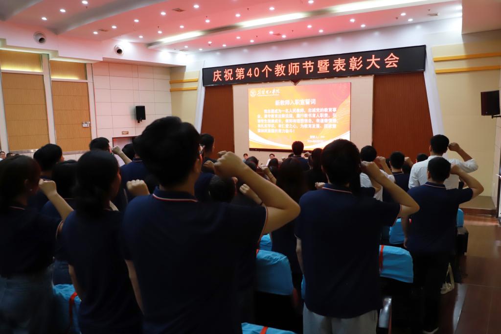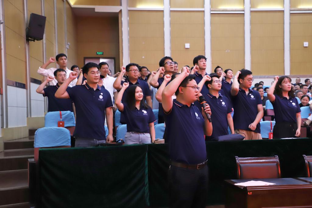 最后,2024年新进教职工在QY千亿球友会第五届教学名师蒋再富老师带领下进行庄严宣誓。