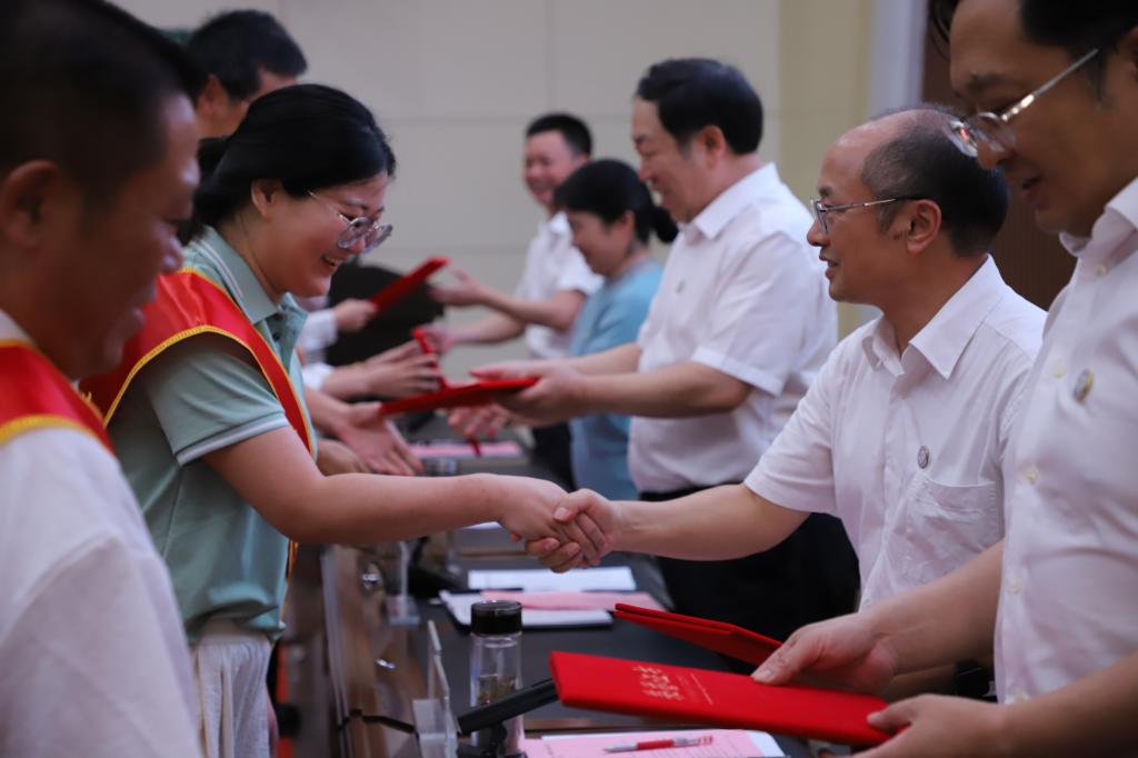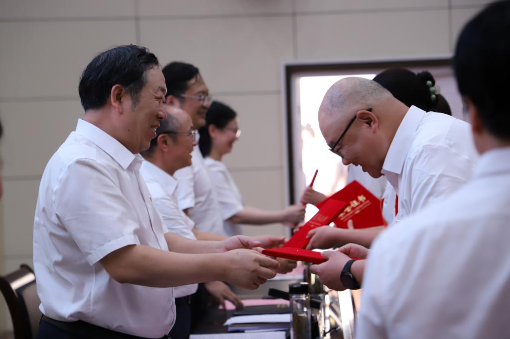 大会对2023年度先进集体和先进个人,优秀共产党员、优秀党务工作者,教学先进个人和先进科研工作者以及从教30年教职工进行了表彰。与会校领导为获表彰的先进集体和优秀个人代表颁奖,为新教师代表佩戴校徽。