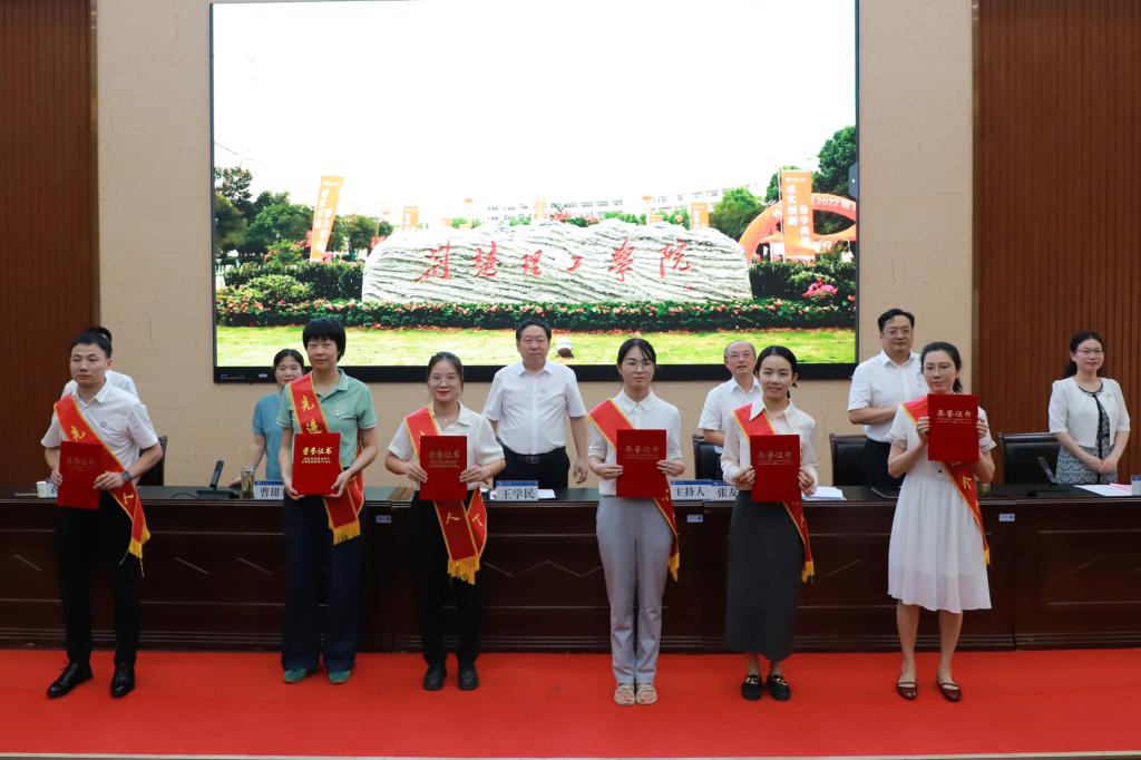张友兵对受到表彰的先进集体和个人表示祝贺,并号召全校教职工要以先进为榜样,爱岗敬业、勇于创新、奋发进取,切实肩负起立德树人的重大任务,当好学生成长路上的引路人,为学校事业高质量发展贡献力量。他向全校教职员工提出四点要求:一是要全面贯彻落实党的教育方针,大力弘扬践行教育家精神。始终不忘立德树人初心,牢记为党育人、为国育才使命,自觉把党的教育方针贯彻到人才培养全过程,把坚持以生为本贯穿到人才培养全过程。二是要把人才培养质量作为生命线,把学生成长成才作为一切工作的出发点和落脚点,着力建设全员、全过程、全方位的育人体系,聚焦审核评估和达标申硕两大目标,提高人才培养质量。三是要以服务四个面向、区域主导产业行业所需,对接湖北省“51020”现代产业集群和荆门市“4211”现代产业体系,推进科技创新,优化学科专业结构,培育打造高水平科技创新团队,积极争取各类纵横向项目,加快推进平台建设,不断深化产教研用融合。围绕国家战略和省市需求凝练研究方向,面向产业发展需求引领科技创新,聚焦企业需求解决关键问题,加速科技成果转移转化,促进产学研用深度融合,为培育新质生产力赋能增效。四是要坚持引育用留并举,营造良好的人才发展环境和氛围。要将人才工作作为学校工作的重点,以更高的站位、更严的标准、更实的举措,着力打造人才发展的优良环境,构建“人人皆可成才,人人尽展其才”的氛围,重视并关注教师的成长和发展,持续加大高层次人才引进和培育力度,深化人才发展体制机制改革,培养造就各类人才,以切实提高学校核心竞争力,服务地方经济和社会发展,为学校高质量发展贡献新的力量。