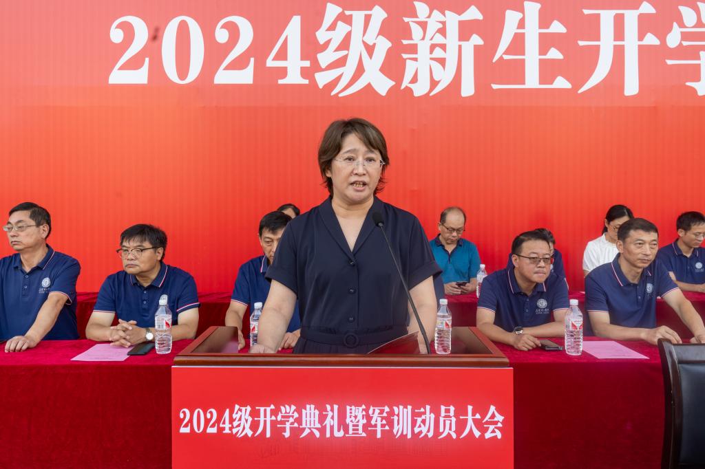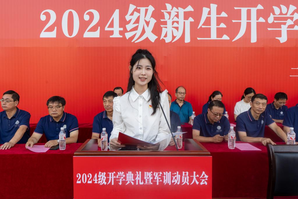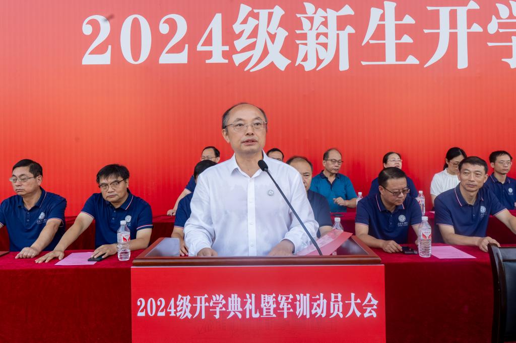 校长张友兵代表全体师生员工向2024级新生表示欢迎,发表题为“不负韶华 砥砺奋进 做强国建设的新质青年”的讲话,并寄语2024级新生,要胸怀家国,树立投身强国建设的远大目标,扣好人生第一颗扣子,用鸿鹄之志开启大学之旅;要修炼自身,涵养道德品行,做一个自觉、自律、自信、自强的人;要博学笃行,充分利用好0.01的差距,筑牢知识之基,从“要我学”转变成“我要学”;要持续创新,砥砺奋斗,敢于知难而进,不负韶华、不负时代,用智慧和汗水谱写属于自己的无悔青春,努力成长为强国建设的新质青年。