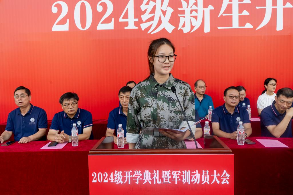 新生代表杨宇佳呼吁同学们,要始终保持对知识的好奇与渴求,悟道理、明事理,懂得利用大学的丰富资源和广阔平台,拓宽视野、增长才干,厚植家国情怀、涵养进取品格,担起民族复兴大任,共同书写青春华章。