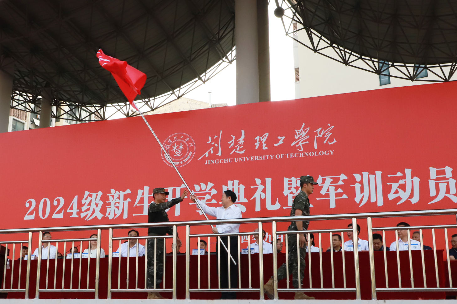 各学院(部)、职能部门相关负责人,2024级新生辅导员、承训教官以及全体新生参加典礼。