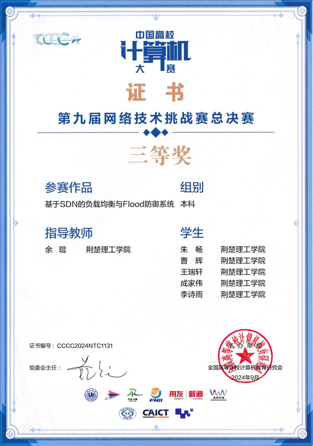 近日,第九届中国高校计算机大赛—网络技术挑战赛全国总决赛在浙江温州举办,QY千亿球友会人工智能学院组建的4支参赛队全部获奖,其中全国总决赛三等奖1项,华中赛区三等奖3项。
