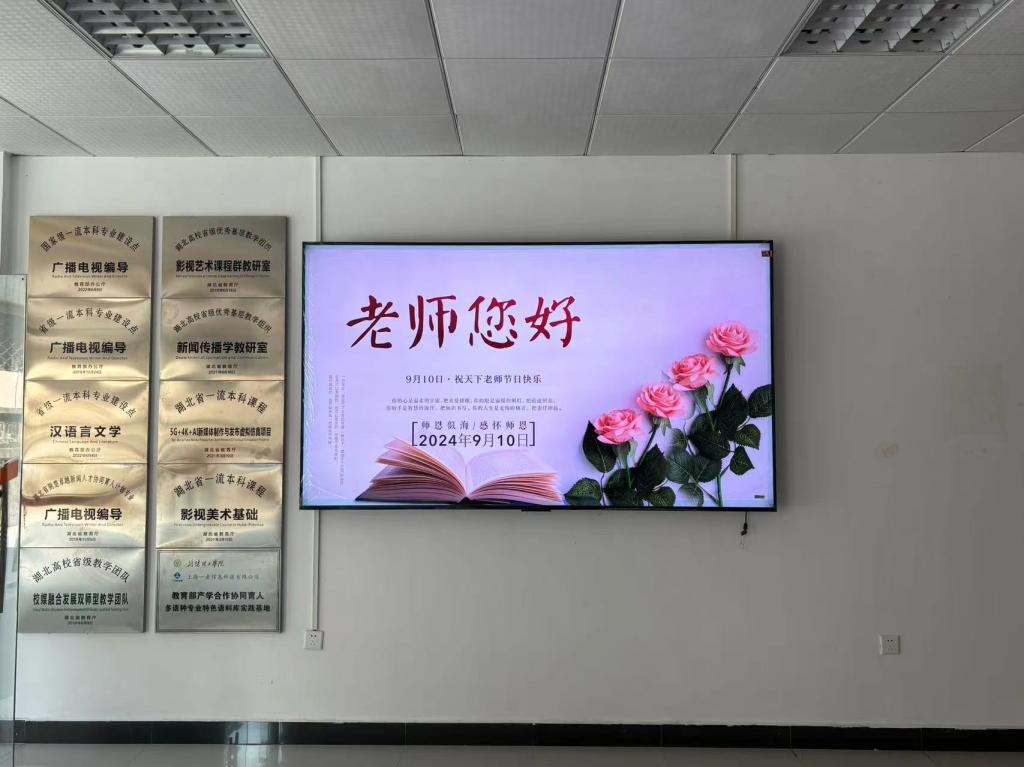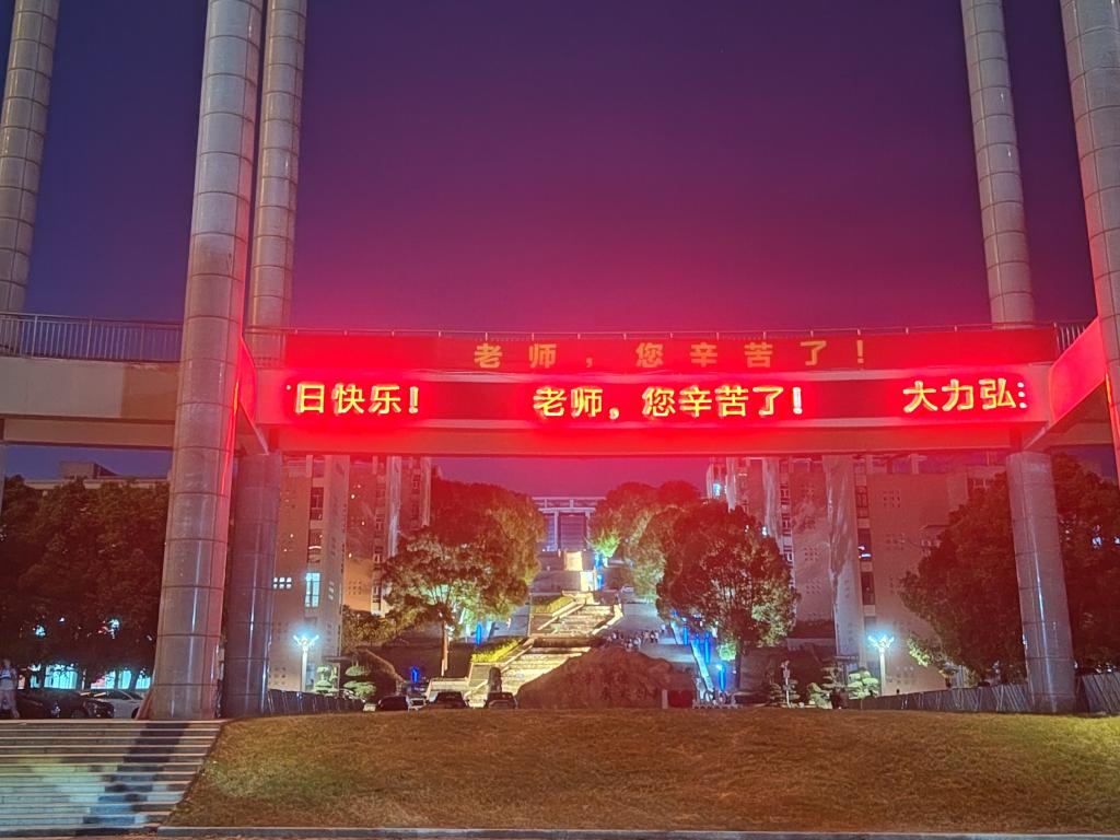 在教师节期间,学校在图书馆、教学楼区域显示屏纷纷展示“老师,您好!”“老师,您辛苦了!”等字样,还通过各类宣传阵地播放“热烈庆祝第40个教师节”“向老师致敬!”“大力弘扬教育家精神,加快建设教育强国!”等标语,以实际行动弘扬优秀尊师文化,引导社会各界感念师恩、礼敬教师,向广大教师表达节日祝福,营造出浓厚的节日氛围。