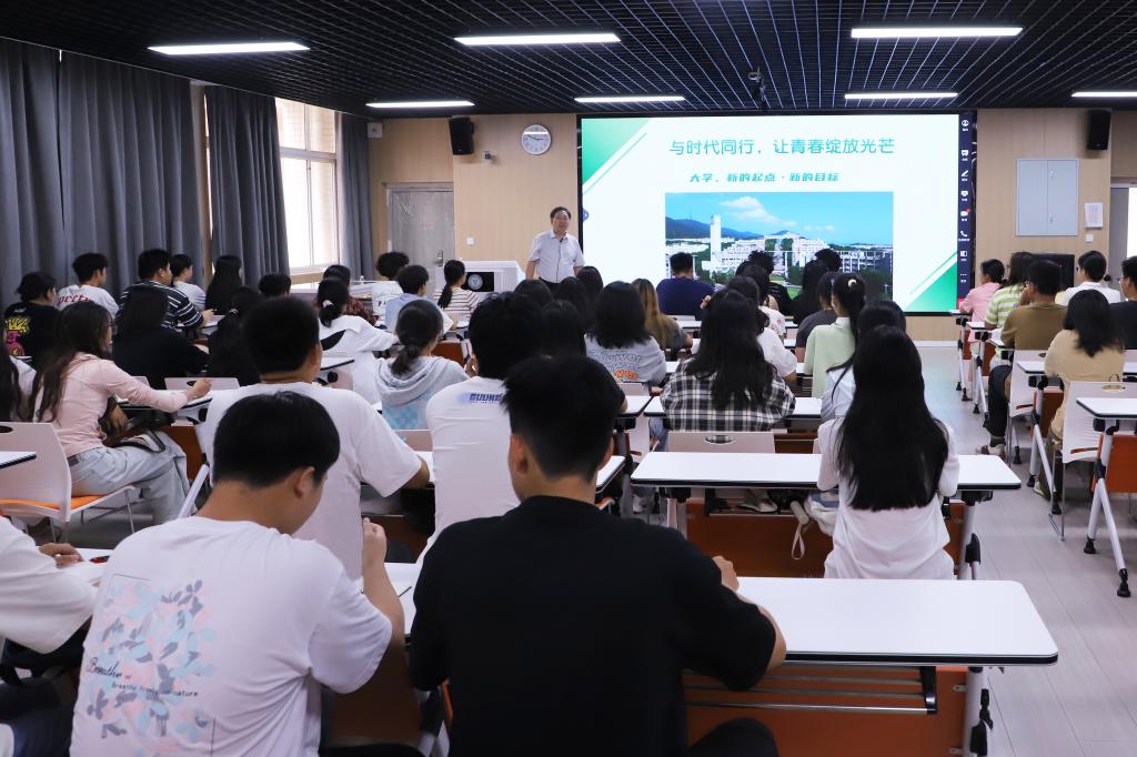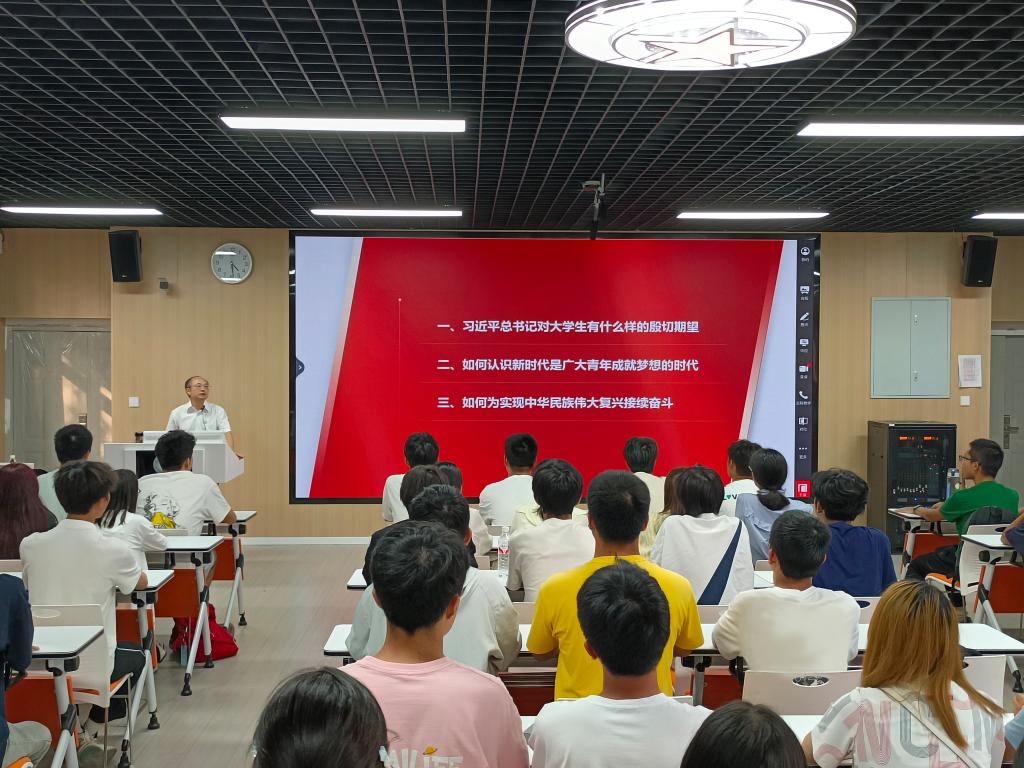 王学民以“与时代同行,让青春绽放光芒”为主题,从当代青年的角色定位和使命担当出发,引导学生思考大学的意义,通过生动的案例为学生讲述了大学是什么,列举现实可行措施建议大学应该做些什么,怎样度过新生适应期,鼓励学生珍惜大学时光,追求真理,将个人理想融入党和国家事业中,争做堪当民族复兴重任的时代新人。