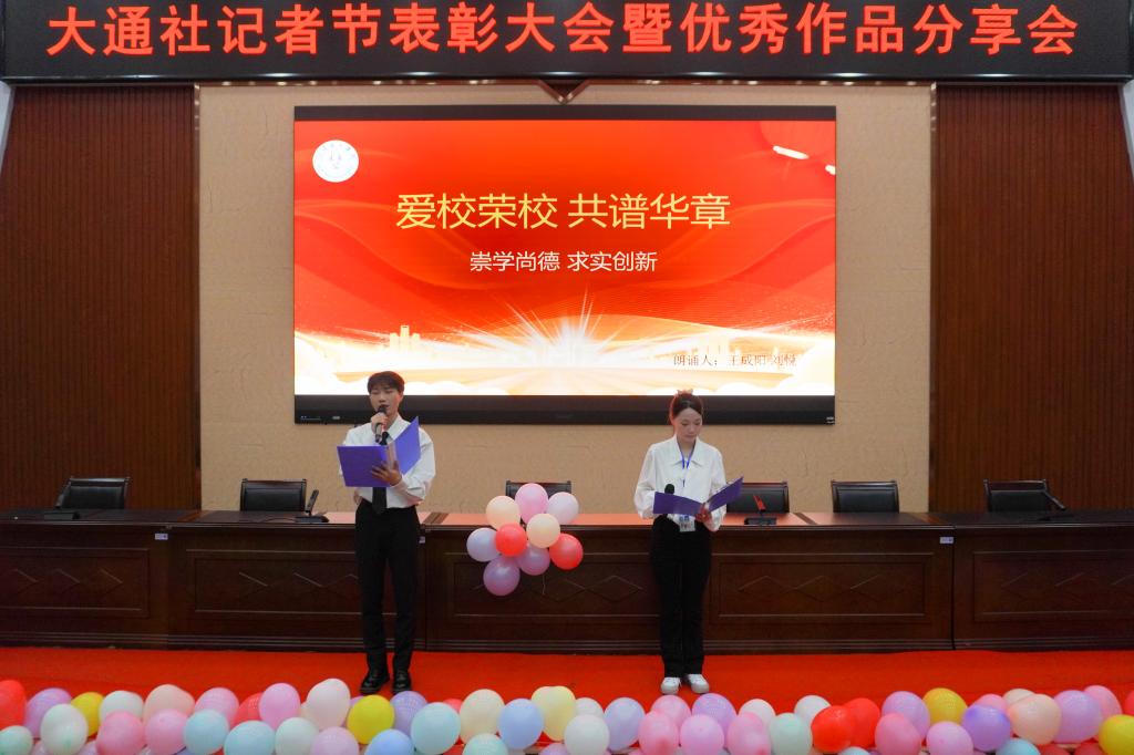 大会宣读了新闻、文学、摄影、朗诵作品获奖名单以及广播台先进个人,与会老师分别为获奖学生颁奖。各类作品获奖代表进行作品创作经验分享,广播台学生代表以“爱校荣校”为主题进行现场朗诵及主题演讲,先进个人代表发表获奖感言。