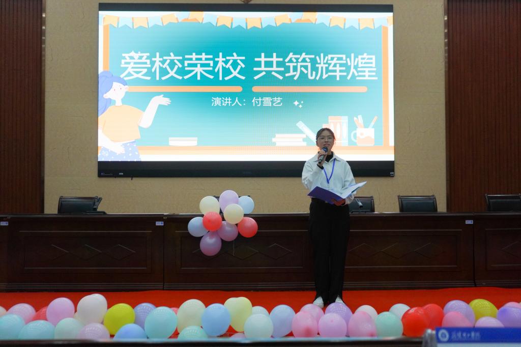 在朗诵及主题演讲环节,广播台同学们以满腔的热情投入到朗诵当中,语调激昂而富有感染力,他们以自己的声音为桥梁,深刻表达着对学校的热爱与敬意。在精彩绝伦的演讲中,他们带领着大家穿梭学校的历史回廊,从建校初期的筚路蓝缕,到如今的蓬勃发展,将那些被岁月尘封的故事呈现在眼前,并鼓励大家携手并进,为学校的发展贡献自己的力量。现场掌声不断,活动的气氛被推上了高潮。