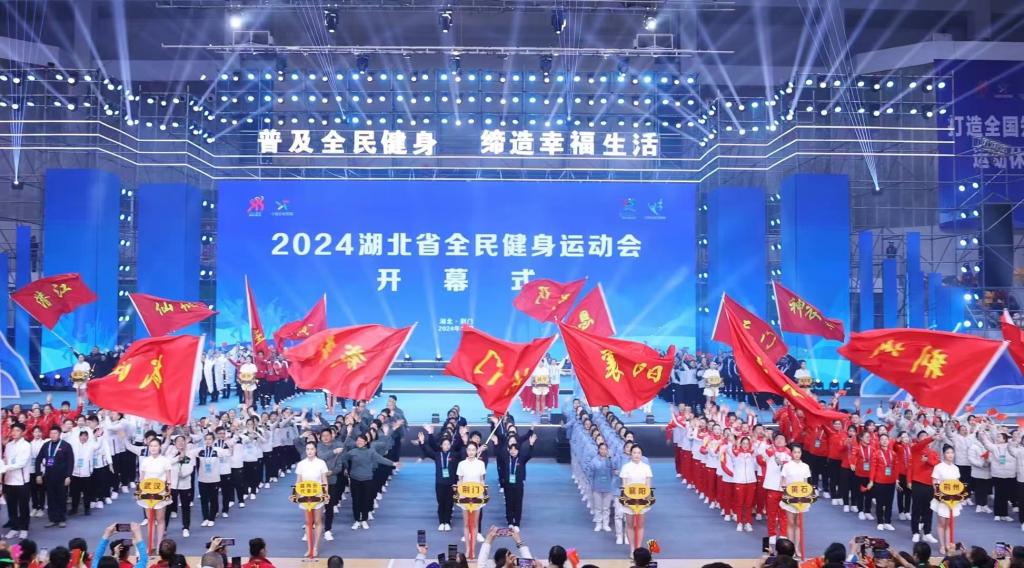 近日,2024湖北省全民健身运动会在荆门开幕。来自全省17个市州的3000余名运动员、裁判员、教练员、志愿者等参加活动。