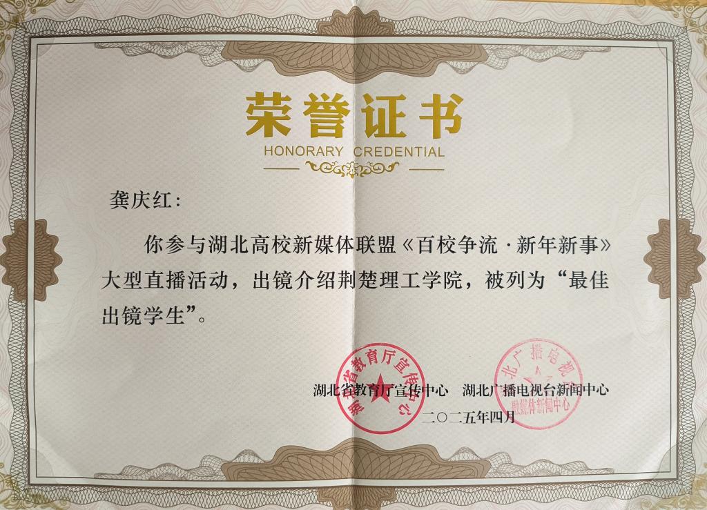 近日,湖北高校新媒体联盟《百校争流》专题研讨会在华中师范大学举行。会上对联盟主办的《百校争流・新年新事》短视频优秀作品成果评选活动进行了总结,QY千亿球友会报送的短视频被列为“最佳传播作品”,主讲人龚庆红同学被列为“最佳出镜学生”。