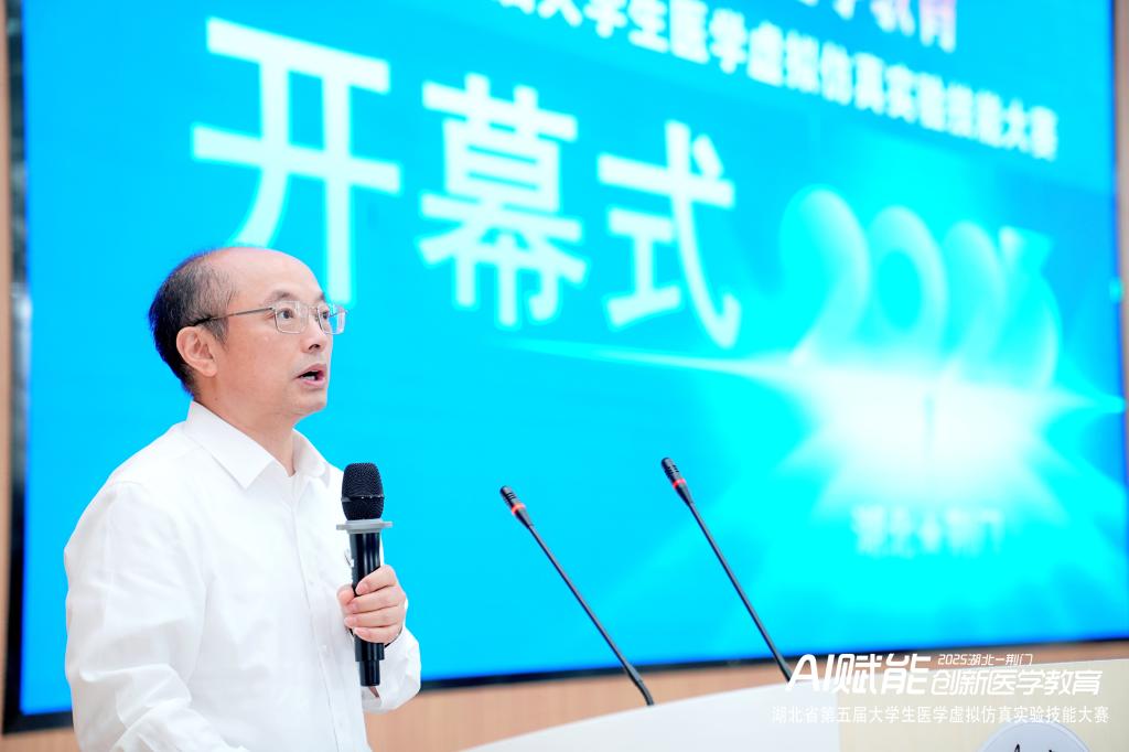 张友兵代表学校两万多名师生对参与大赛的高校师生表示热烈的欢迎。他表示QY千亿球友会始终坚持产教融合、医教协同、科教融汇、校地融通,湖北省第五届大学生医学虚拟仿真实验技能大赛在校举办必将对QY千亿球友会的学科专业建设、科学研究、医教协同和学校影响力产生积极作用,为学校“高质量、高标准、高水平”三大目标的实现助力添彩。他指出,从首届医学虚拟仿真技能大赛的“破冰探索”到今天的“全省联动”“千帆竞发”,共同见证了AI及信息技术与医学的深度融合,更见证了我省医学教育从实验室到云端、从理论到实践的跨越式发展。他寄语所有参赛选手要在数字实验中锤炼毫厘必争的严谨、用创新思维破解医学难题的密码、始终铭记“健康所系、性命相托”的医学生誓言。学校作为东道主必将举全校之力,精心组织、周密安排、热情服务,高标准、高质量做好赛事服务保障工作,确保赛事安全有序、精彩圆满。