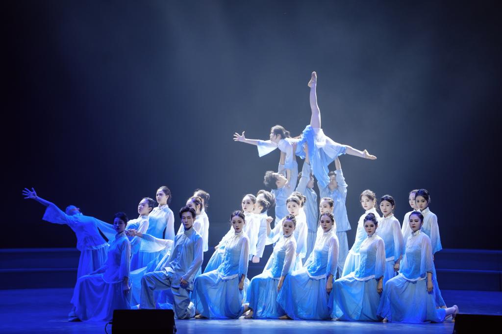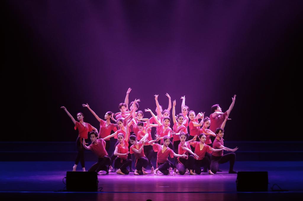 汇演以“序”开篇,拉开逐梦帷幕。“舞来·吾往”篇章,《锦簇》以灵动舞姿勾勒青春繁花,《织嫁》借助传统元素传递文化根脉,《无人知晓》通过细腻表达诉说成长哲思,在古典与现代的交织中,回溯专业学习的逐光旅程;“颂情·绽华”篇章中,《觉醒年代》以舞蹈的形式复刻热血历史,让革命精神跨越时空,《黄河岸边芦花开》通过群舞传递家国大义,将思政内涵融入艺术表达,点燃了师生们的家国情怀;“生生不息”篇章聚焦多元文化,傣族《花漾》、海阳秧歌《珊瑚颂》、蒙族《狼图腾》等作品,串联起不同民族的风情,彰显了文化传承的使命,《漫落花间》《天路》选段、《轨迹》等在古典与现代的碰撞间,书写青春对信仰、理想的追寻。