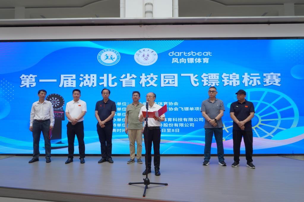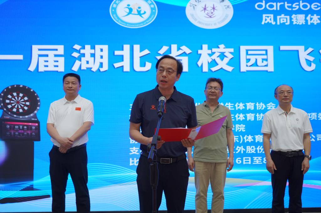 阳艺武向大赛的启幕表示热烈祝贺,并向全体来宾、参赛师生及工作人员致以诚挚问候与崇高敬意。他表示,协会始终坚持以习近平新时代中国特色社会主义思想为指引,全面落实立德树人根本任务,践行“教会、勤练、常赛”育人理念,推动学生体育事业高质量发展。飞镖运动作为融合心智与技艺的现代项目,不仅淬炼精准度与耐力,更是锻造心理素质与团队协作的熔炉,每一次投掷都是对自我极限的挑战。本次赛事的举办,是我省自2015年引入校园飞镖运动以来的里程碑式突破,旨在响应师生多元化运动需求,深化飞镖文化浸润,激发参与热情,推动项目在全省体系化普及与高质量发展。他寄望大赛成为提升技术水平的练兵场、展示新时代师生锐意进取风貌的窗口、检阅教学训练成果的平台,并勉励运动员以高昂斗志和精湛技艺,赛出“湖北高度”与“荆楚气度”,在竞技与友谊交融中共襄盛会。