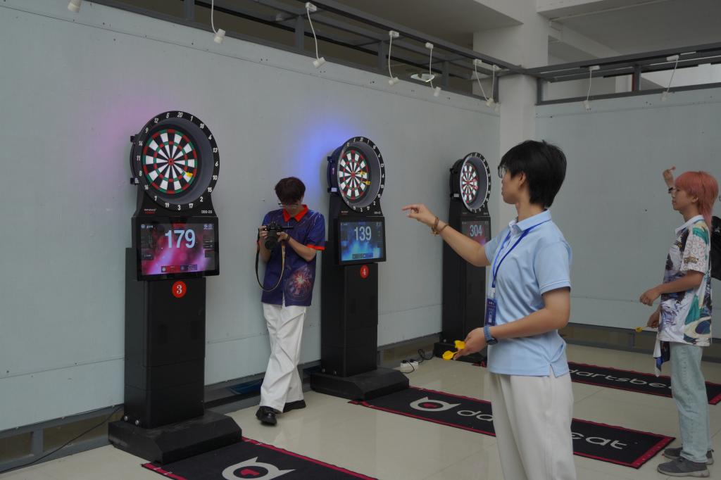 张友兵深入阐释飞镖运动的育人价值,指出其积极响应“体教融合”号召,兼具竞技性、趣味性与益智性,其蕴含的精准之道、博弈之智、包容之美,能有效锤炼学生专注力、决策力,彰显体育精神。他寄语青年学子,将飞镖运动作为工匠精神的修炼场、人生拼搏的预演台和文明风尚的践行地,鼓励运动员赛出风格、勇于超越。同时表示,学校将全力做好赛事组织与服务保障,确保大赛安全有序、精彩圆满。
