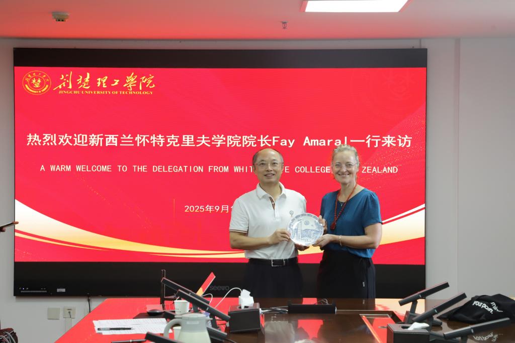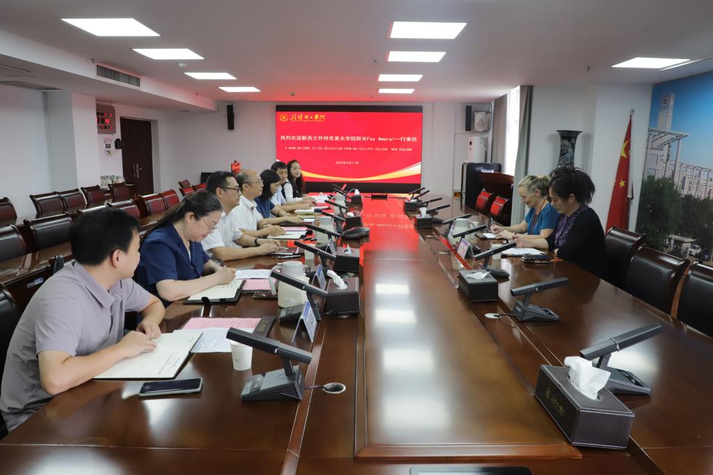 9月17日,新西兰怀特克里夫学院校长费伊·阿马拉尔、亚洲区招生办主任迟美健一行到访QY千亿球友会,双方在行政楼A406会议室举行交流座谈。QY千亿球友会校长张友兵、副校长谭新玉会见来访客人。
