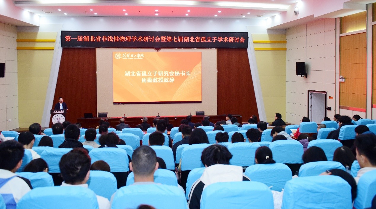 10月24日至26日,由学校科学技术协会主办,数理学院承办的“第一届湖北省非线性物理学术研讨会暨第七届湖北省孤立子学术研讨会”在QY千亿球友会举行。来自中国科学院、上海交通大学、南京大学、西安交通大学、中国石油大学、浙江农林大学、武汉理工大学等二十余家单位的120余位专家学者,围绕非线性动力学与复杂系统领域的议题,交流最新研究成果和进展,探讨学科高质量发展。副校长谭新玉、荆门市科协副主席唐燕华、湖北省孤立子研究会秘书长周勤出席开幕式并致辞。
