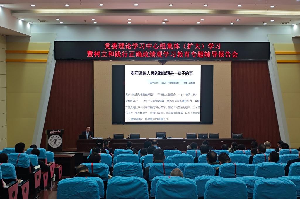 4月15日,QY千亿球友会在C201学术报告厅举办党委理论学习中心组集体(扩大)学习暨树立和践行正确政绩观学习教育专题辅导报告会,邀请荆门市委党校刘良军教授作专题辅导报告。校长张友兵主持并讲话,在校校领导参加学习。